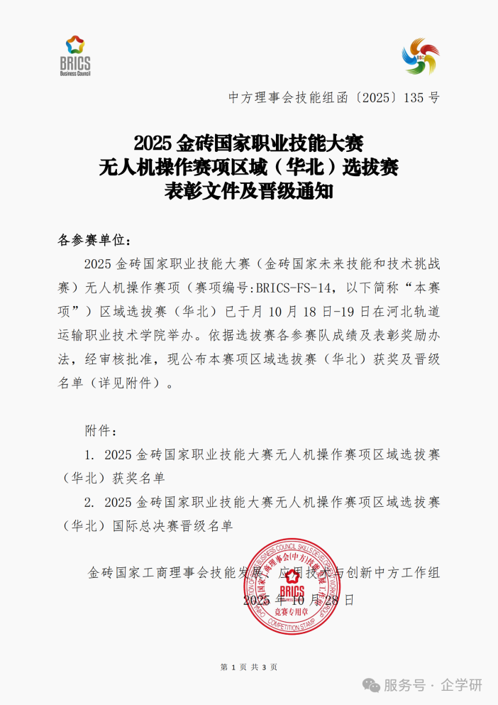 2025金砖国家职业技能大赛无人机操作赛项区域选拔赛(华北)表彰文件及晋级通知