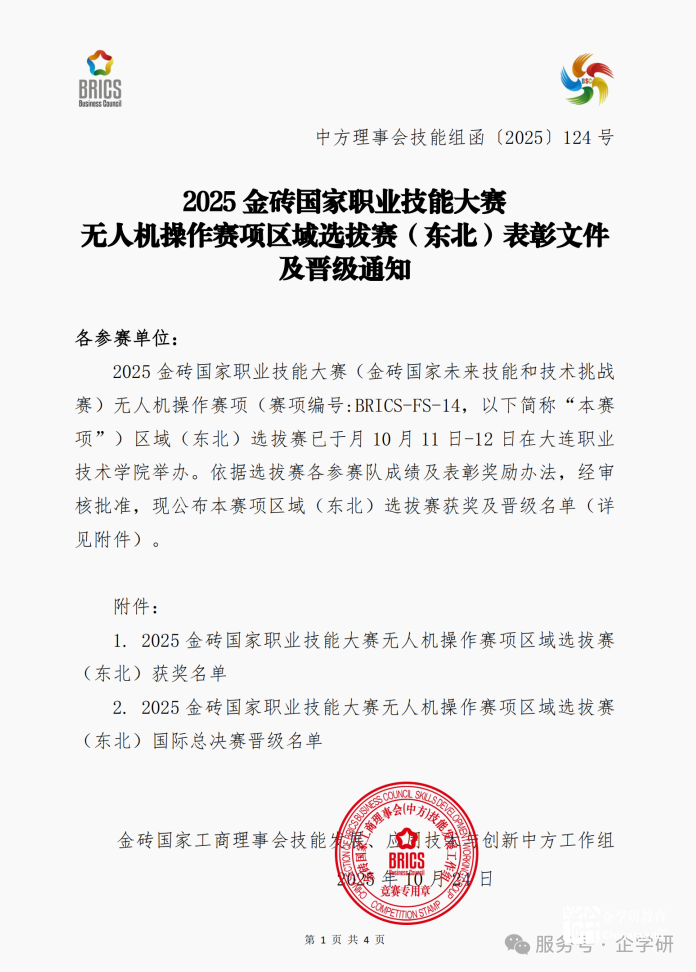 2025金砖国家职业技能大赛无人机操作赛项区域选拔赛(东北)表彰文件及晋级通知