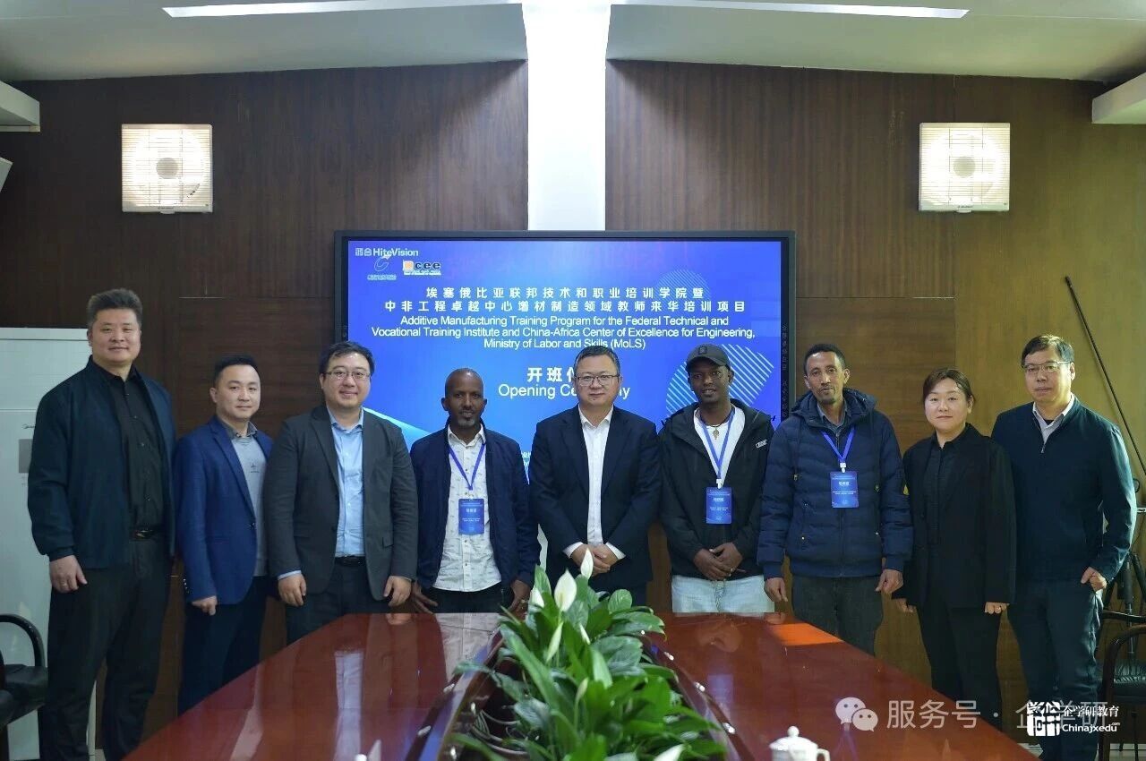 由北京企学研教育科技研究院发起的ECR国际技能培训(IST)计划以来,2026年1月19日迎来首批埃塞俄比亚联邦技术和职业培训学院暨中非工程卓越中心增材制造领域教师前往广东松山职业技术学院正式开启为期2周增材制造领域教师来华培训项目。参加本次开班仪式的领导和老师有广东松山职业技术学院党委副书记洪明刚,北京企学研教育科技研究院副院长李昂,深圳市创想三维科技股份有限公司教育事业部总监洪鑫城,埃塞俄比亚联邦技术和职业培训学院吉达伊·阿塞法·基达内,沃达约·亚雷德·沃伊扎,格马楚·特斯法耶·古尔梅萨,广东松山职业技术学院国际合作与交流中心主任高贺、北京企学研教育科技研究院院长助理陈杰文及广东松山职业技术学院国际合作与交流中心、人力资源部、先进制造学院的相关负责人与授课教师参会。