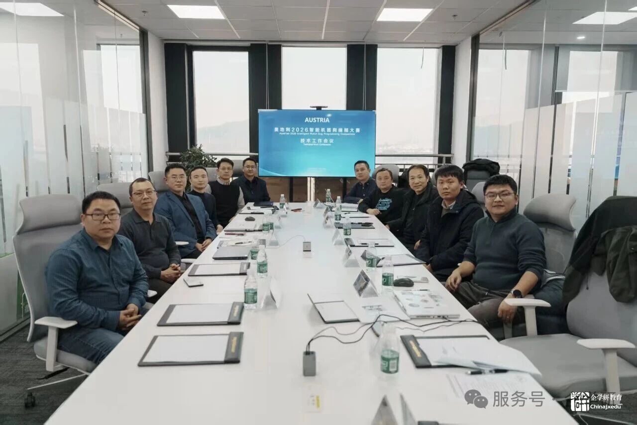 2026年1月9日,奥地利2026具身智能四足机器人编程挑战赛技术准备会在苏州召开,北京企学研教育科技研究院执行院长何勇、培训鉴定处主任尹华,南京工程学院自动化学院机器人工程系教授乔贵方、应用技术学院副教授杨清林,苏州职业技术大学计算机工程学院人工智能工程技术专业主任崔华,南通职业大学人工智能与电子信息学院教研室主任姜林林,苏州工业职业技术学院人工智能学院教师周闻通,苏州健雄职业技术学院人工智能学院教师唐勇,魔法原子机器人科技(苏州)有限公司中国区销售总监田罡、战略规划市场总监蒋宇翔、西北销售总监段云龙、技术工程师代表陈胜、单超等校企专家参加技术会议。