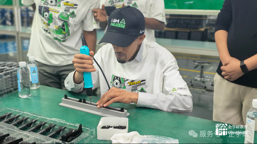 下午,培训团组前往创想三维位于深圳市的组装工厂,并对组装产线进行现场学习,并体验不同环节的3D打印机组装过程。埃塞俄比亚三位教师表示这样有助于他们回国后更好的教授学生3D打印硬件设备相关知识。有助于海外学院对3D打印机的维修保养等相关知识进行学习。