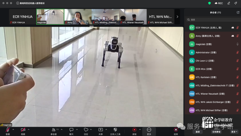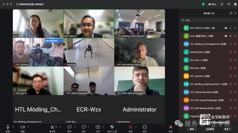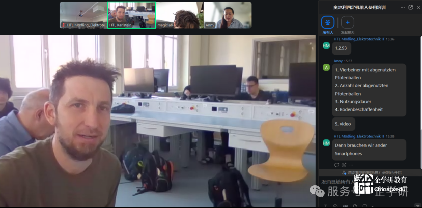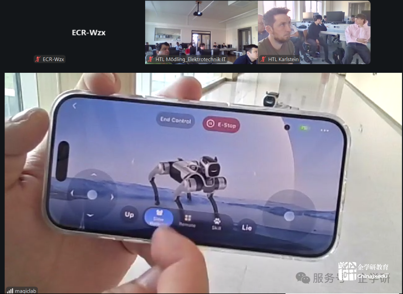 此次培训由北京企学研教育科技研究院主持,魔法原子的海外技术工程师担任讲师,详细讲授机器狗的操作使用技巧、注意事项以及二次开发基础。欧中教育与文化联盟则为沟通搭建桥梁,确保交流顺畅无阻。来自奥地利下奥州两所学校的师生积极参与其中,他们在培训中展现出高度的热情与专注,与讲师积极互动,踊跃提出关于机器狗使用中的各类问题,讲师也一一耐心解答,使得培训氛围热烈而融洽,整体培训效果斐然。