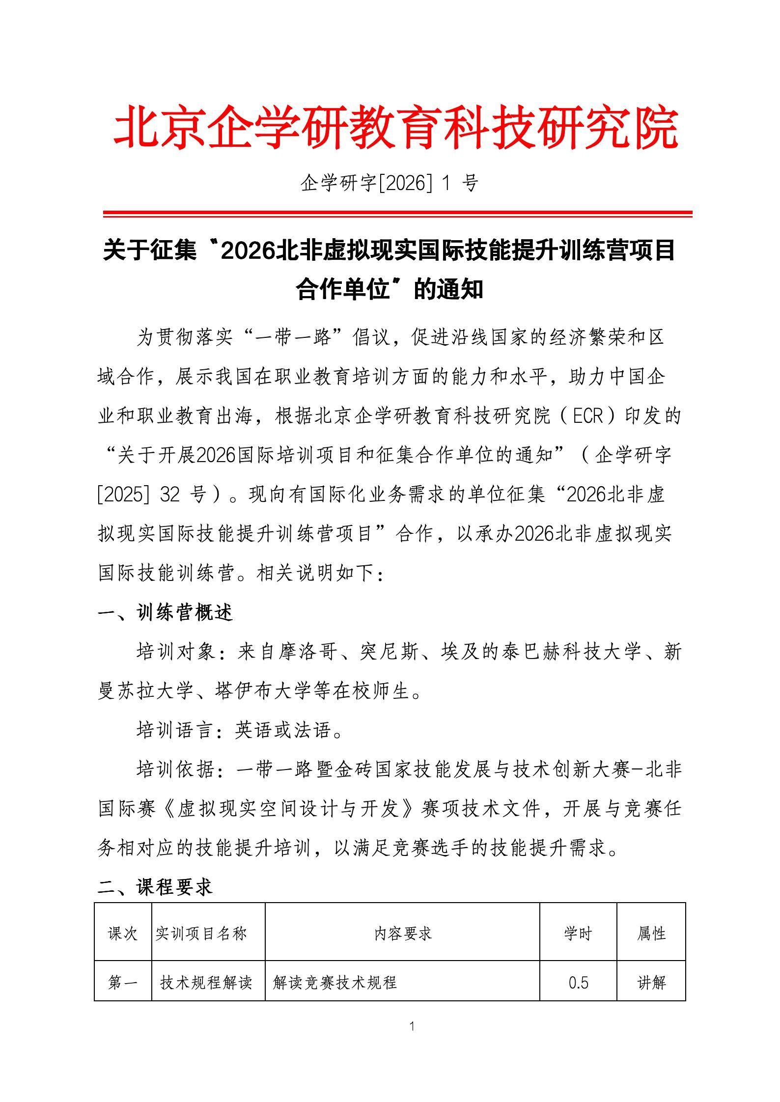 关于征集“2026北非虚拟现实国际技能提升训练营项目合作单位”的通知